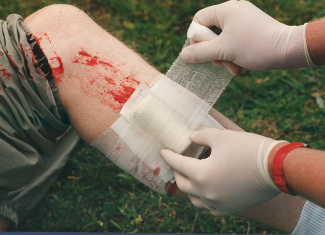 Bei einer starken Blutung, müssen Sie einen Druckverband anlegen: